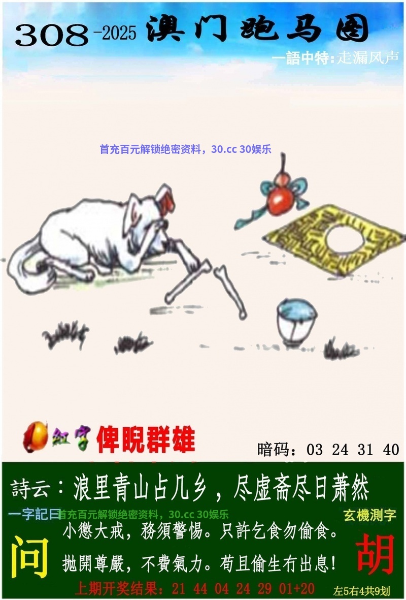 | 307期:五肖 | 羊虎牛狗鸡 | 狗20中 |