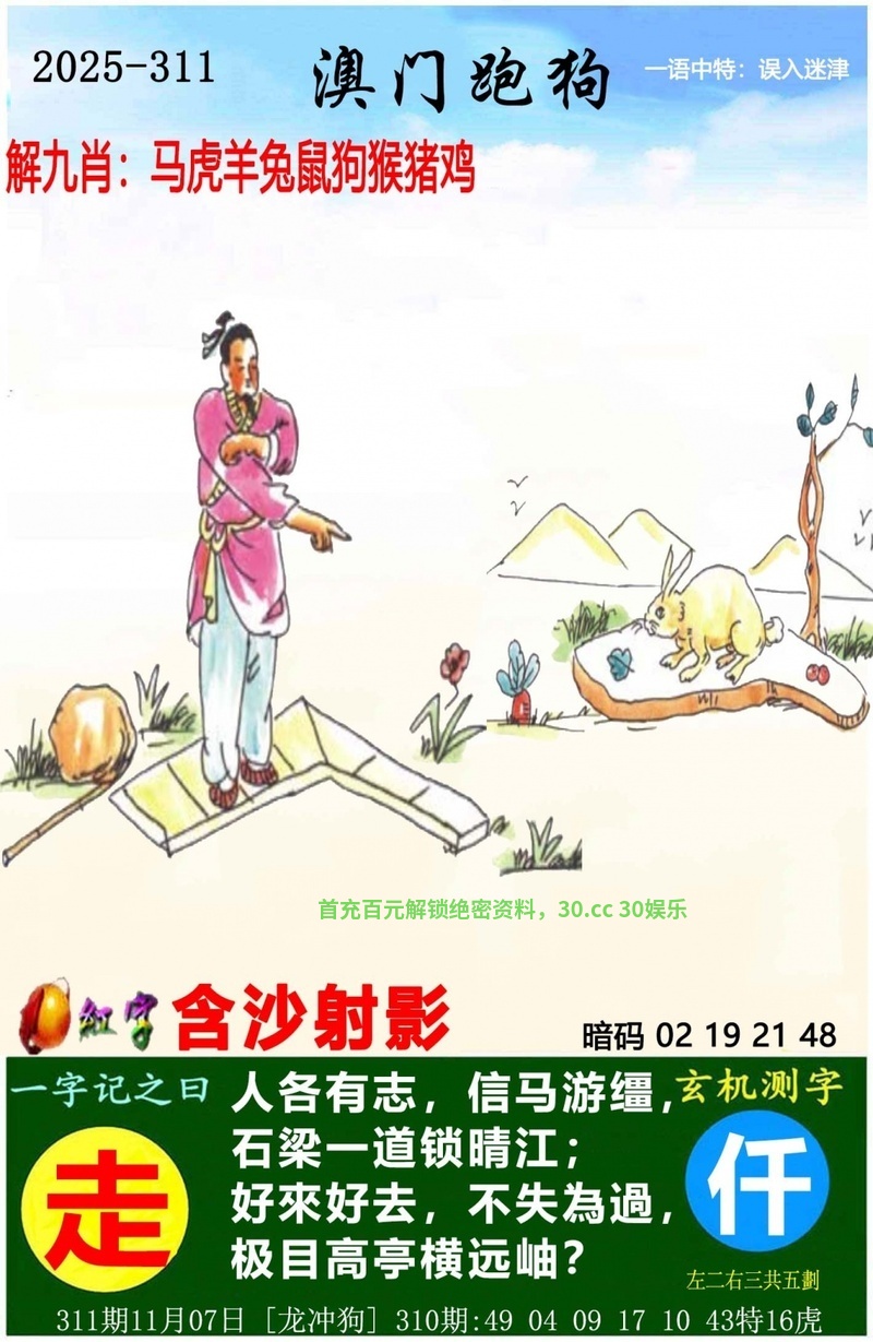 | 313期:五肖 | 兔狗牛猴鸡 | 發00中 |