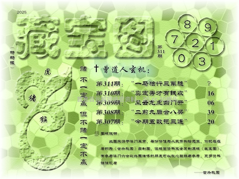 | 311期 | 1-2-3-5-6-7-9 | 蛇37准 |