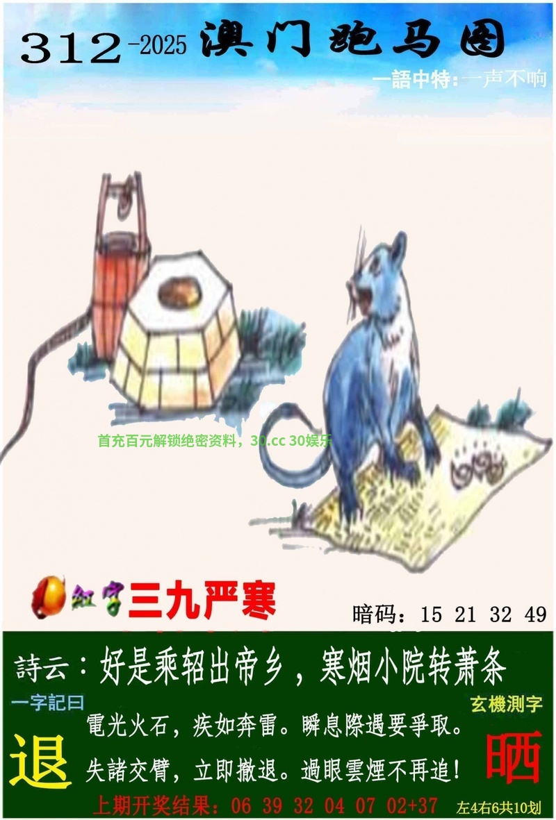 | 309期:⑦码 | 46.22.29.06.39.48.31 | 鼠06中 |